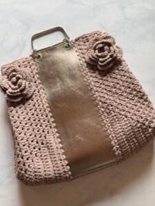 El diseño original de la cartera Alexander Mc Queen, es el amplio que se ve en la primera foto; pero indicaremos los cambios o ajustes necesarios para lograr la terminación y cierre que se ve en la segunda foto.